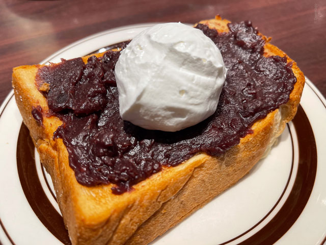 モーニングは、あんとホイップクリームたっぷりのトーストでした。