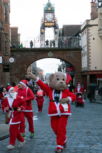 チェスターサンタダッシュとは、この街で毎年12月上旬に行われているチャリティマラソン大会です。
